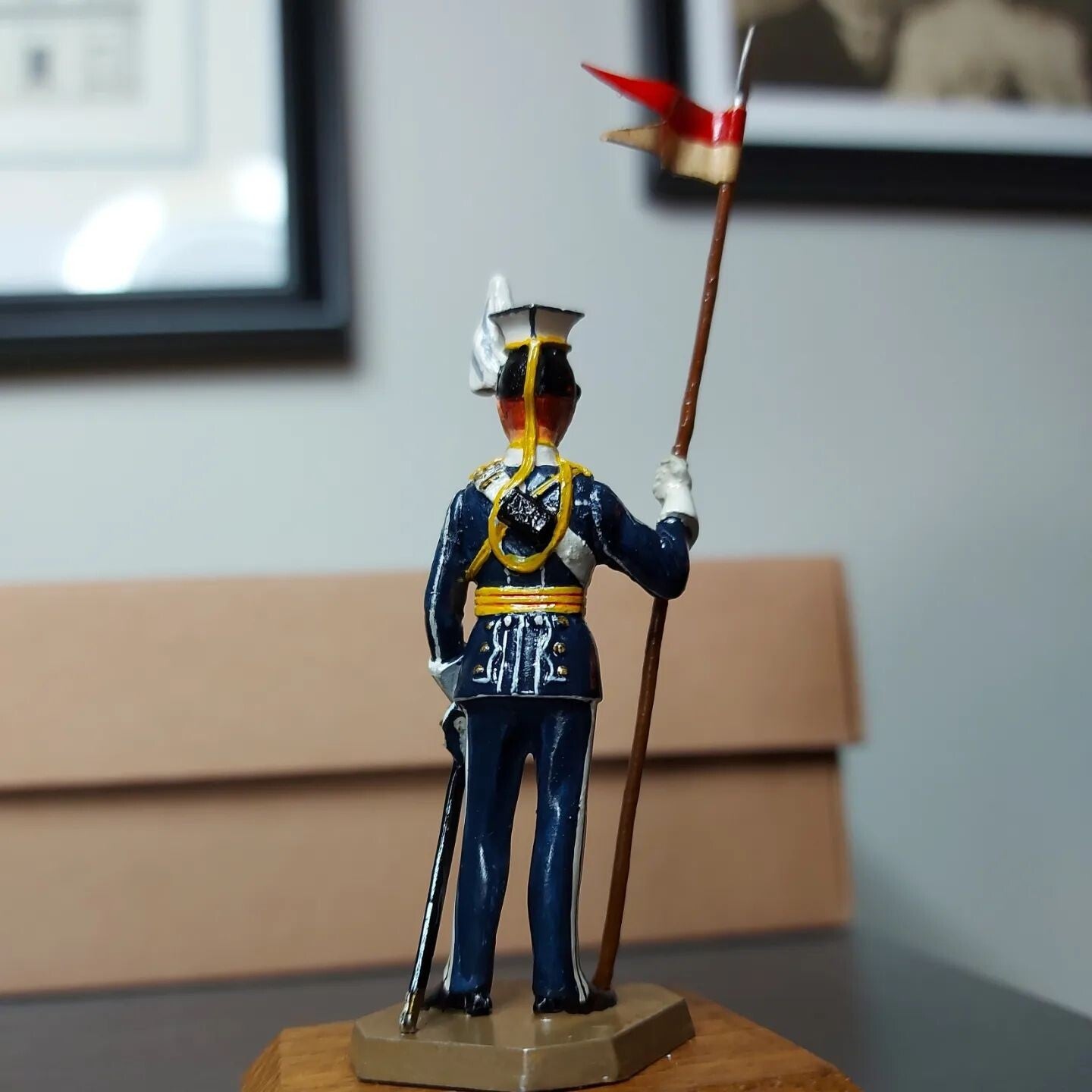 54mm scale 1 figure on wood base, British 17th lancers 1880-1914. From the Ghysbrecht van Brussel collection, full metal restoration, full repaint.