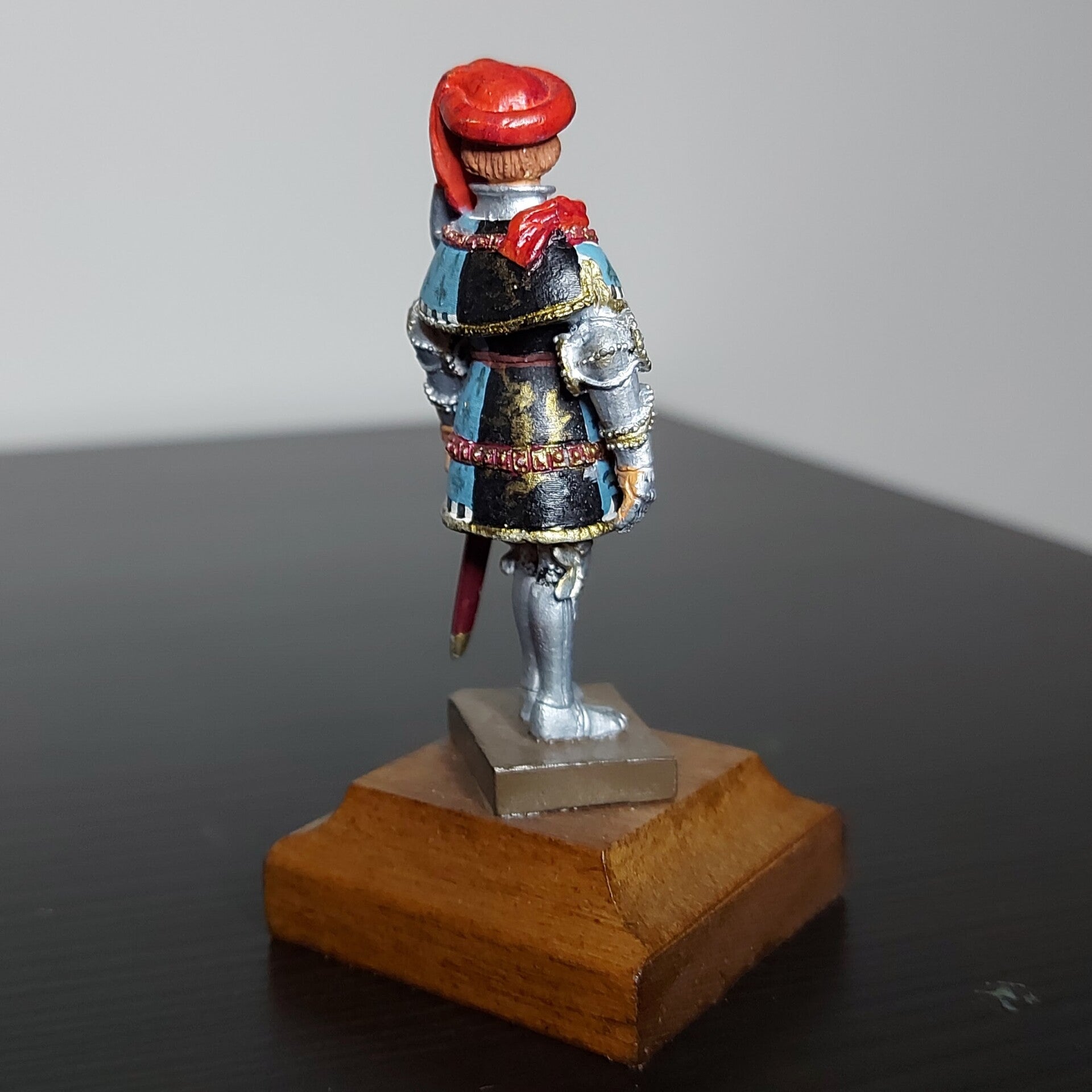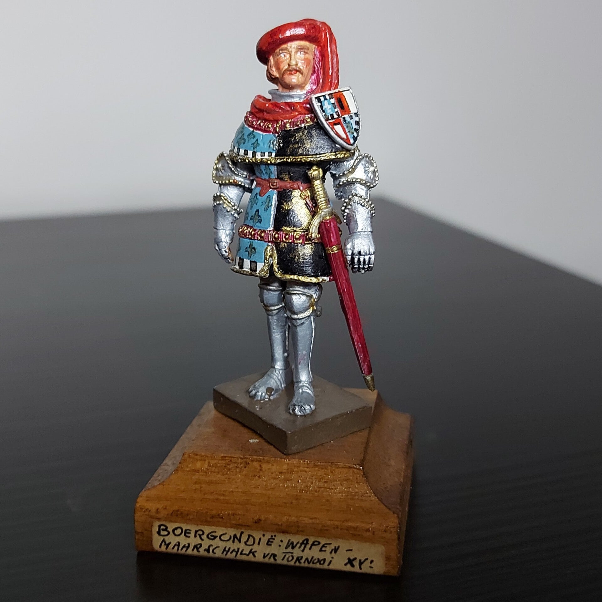 54mm scale 1 figure on wood base, 14th century Burgundy tournament marshall, master of arms