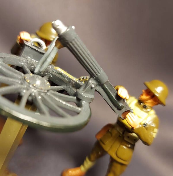 54mm scale W Britains Premier series, out of production Charles Biggs design 2003. US Marines WW1, Vickers machine gun air defence, 2 figures. Restored from the Clarysse collection.