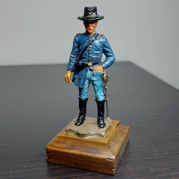 60mm scale 1 figure on wood base, civil war union Artillery Lieutenant 1864. From the Ghysbrecht van Brussel collection, full metal restoration, full repaint.