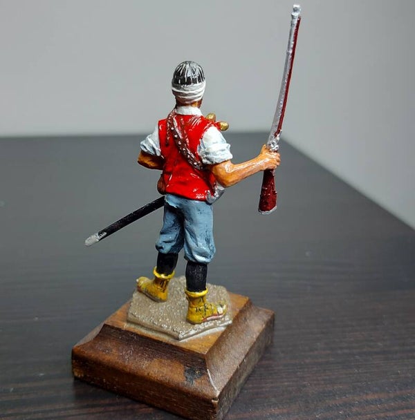 54mm scale 1 figure on wood base, Bosnian Border troop 1750. From the Ghysbrecht van Brussel collection, full metal restoration, full repaint.