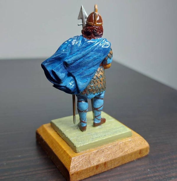 54mm scale 1 figure on wood base, 10th century Saxon warrior 'buscarle'. From the Ghysbrecht van Brussel collection, full metal restoration, full repaint.