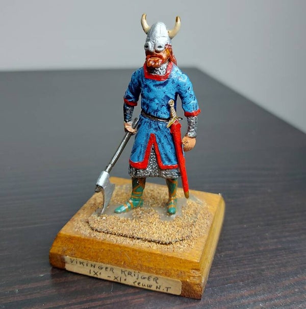 54mm scale 1 figure on wood base, 10th century Viking warrior. From the Ghysbrecht van Brussel collection, full metal restoration, full repaint.