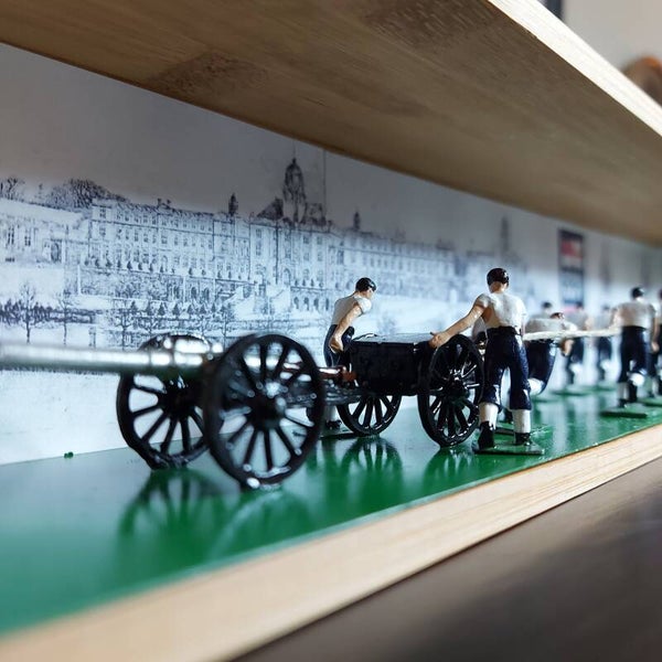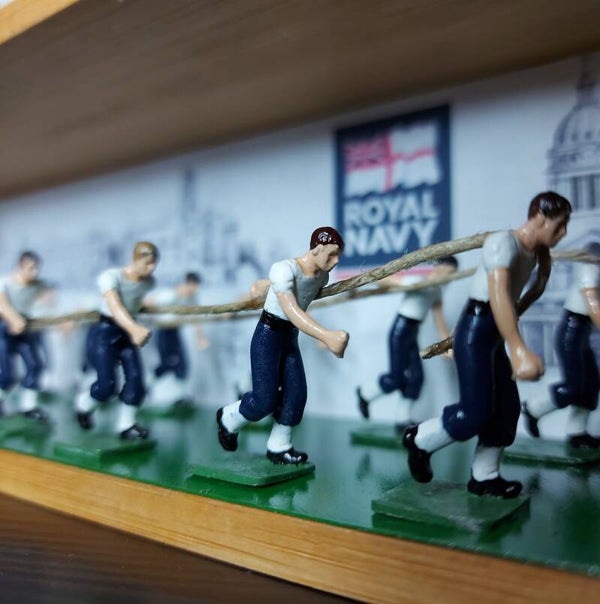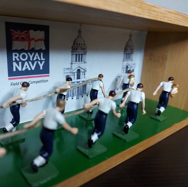 Rotal Navy Field Gun Race, 30mm small figures, original maker probably Richard at Scarlet & Gold 1960s, full restoration & repaint & new bookshelf presentation, from the Clarysse collection.