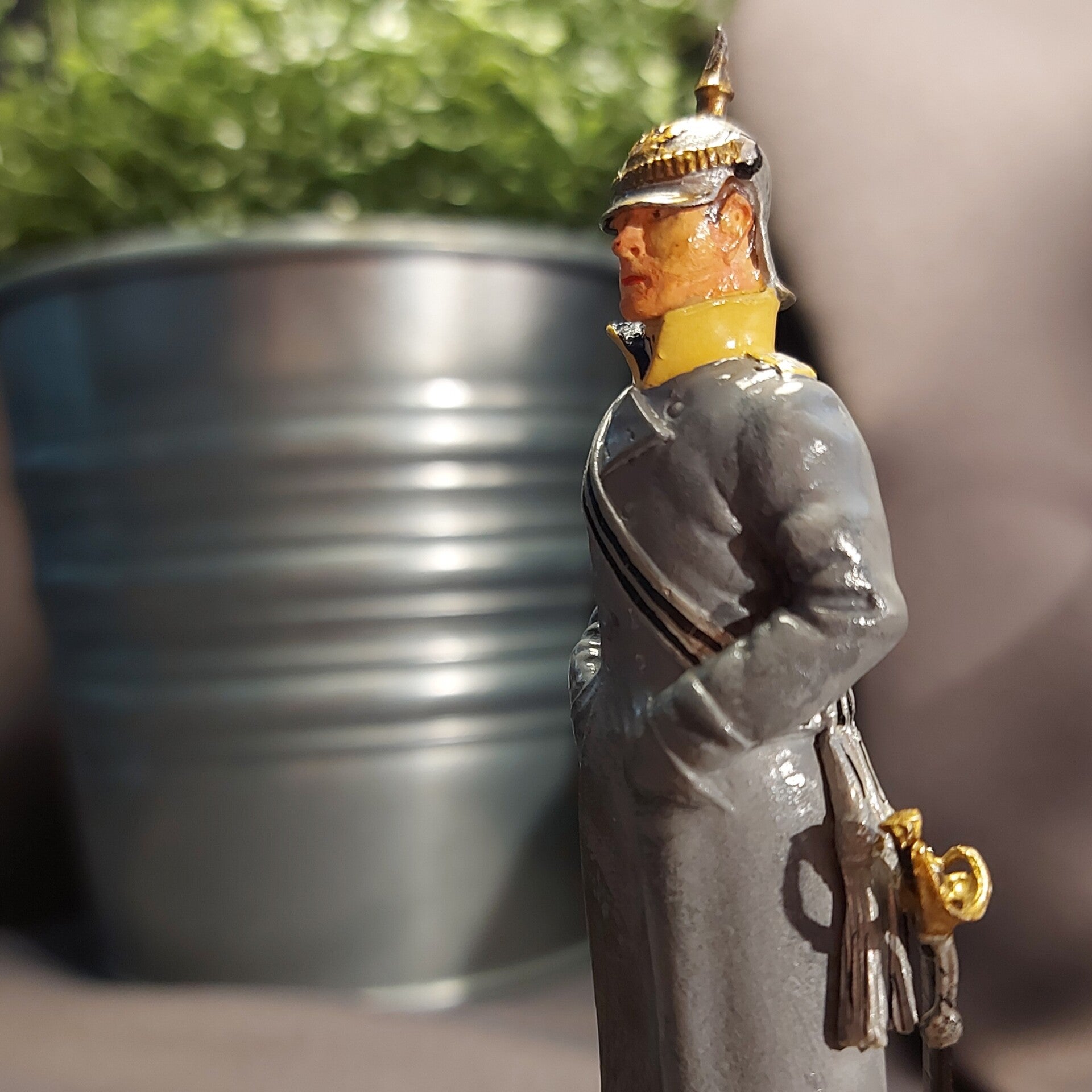 3 metal Series 77 miniatures on wooden plinth - figures 75mm scale, high in detail, painted by hand, +450 grams + postal packaging. Part of the Ghysbrecht van Brussel collection, full repaint.