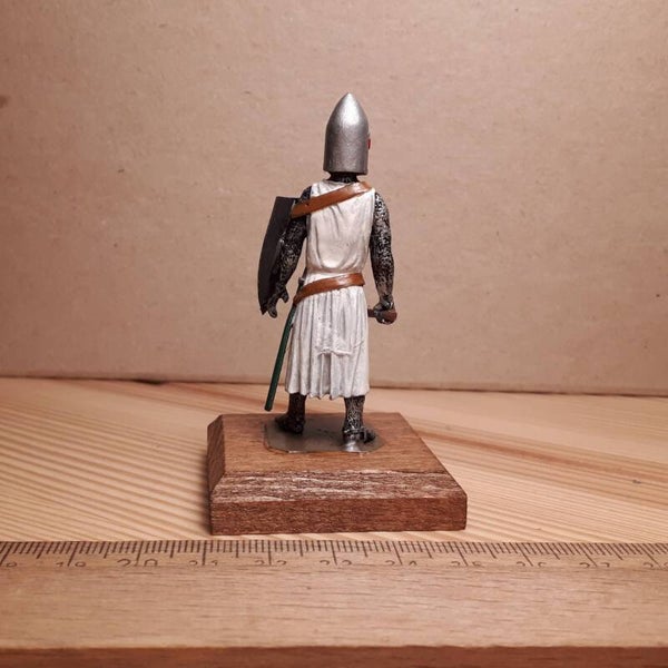 54mm scale 1 figure on wood base, 13th century knight with conical helmet