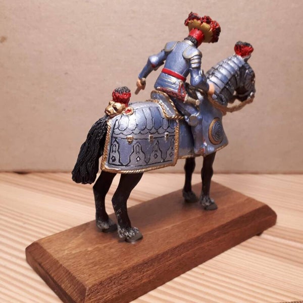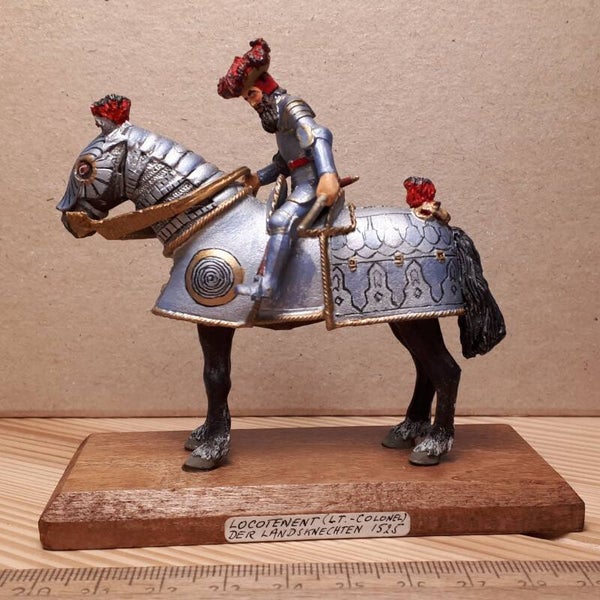 54mm scale 1 figure on wood base, 16th century Lt Colonel men at arms 'Locotenent der Landsknechten' 1525. From the Ghysbrecht van Brussel collection, full metal, parts recast, repainted.