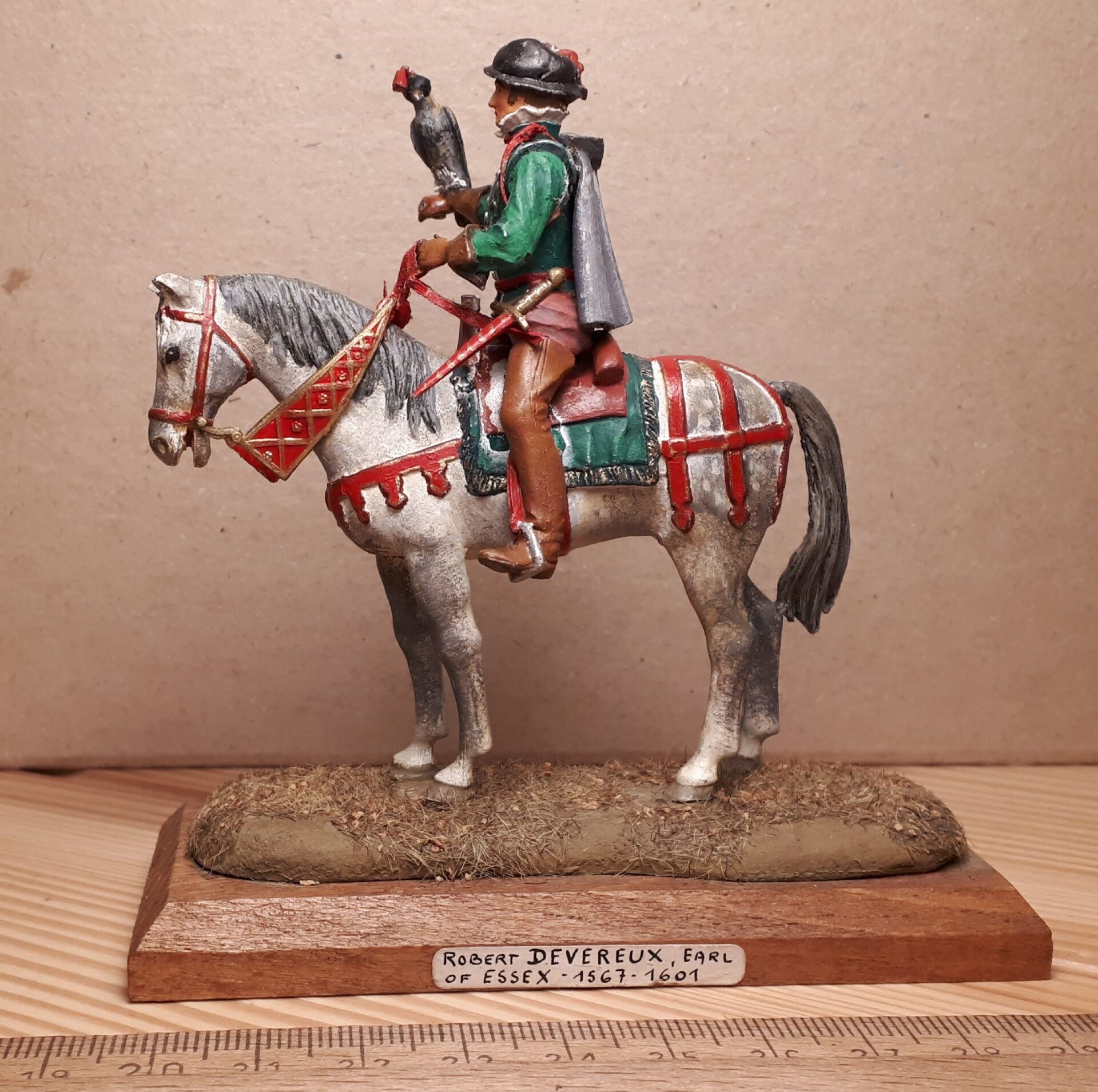 54mm scale 1 figure on wood base, England Robert Devereux Earl of Essex 1567-1601. From the Ghysbrecht van Brussel collection, full metal, repainted.