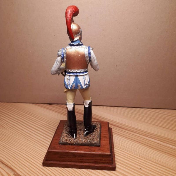 120mm scale 1 figure on wood base, France 1er Empire 120mm Officier subalterne des carabiniers 1810. From the Ghysbrecht van Brussel collection, full metal, repainted.