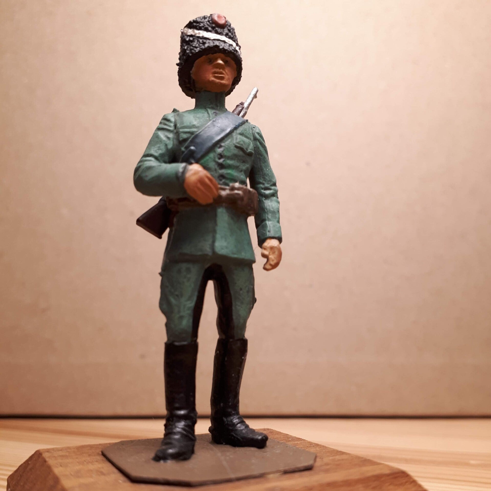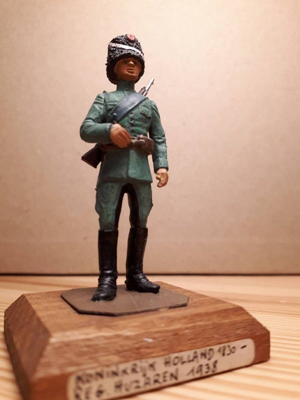 54mm scale 1 figure on wood base, Dutch Hussar 1938. From the Ghysbrecht van Brussel collection, full metal, repainted.